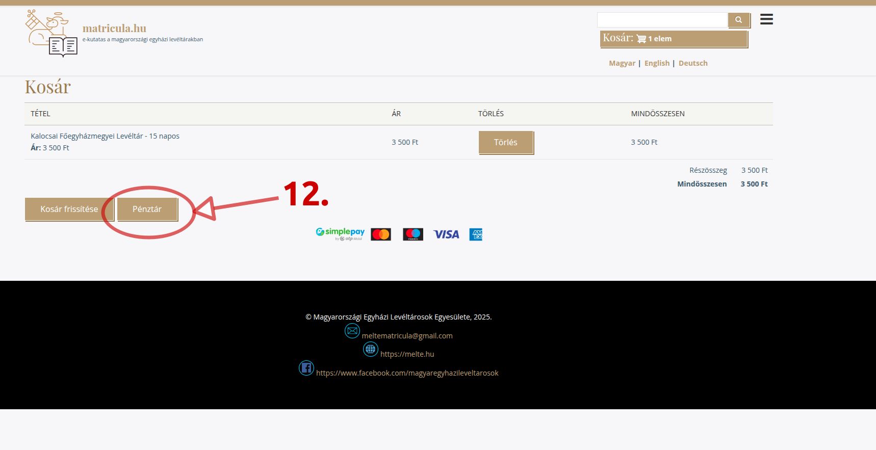 A megrendelést a "Kosár" használatával lehet véglegesíteni.